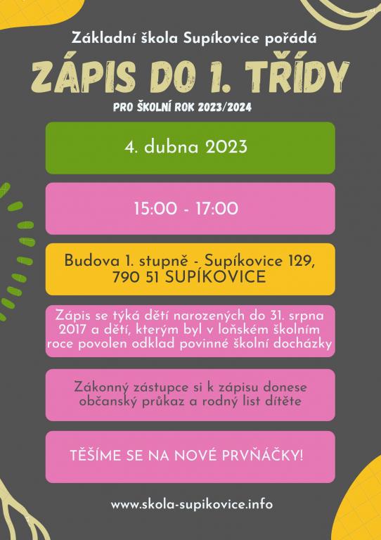 odkaz na stránky školy: https://www.skola-supikovice.info/aktuality/zapis-do-1-tridy