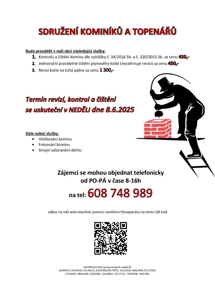 Plakát pro kominické práce REVIZE - KONTROLA - ČIŠTĚNÍ